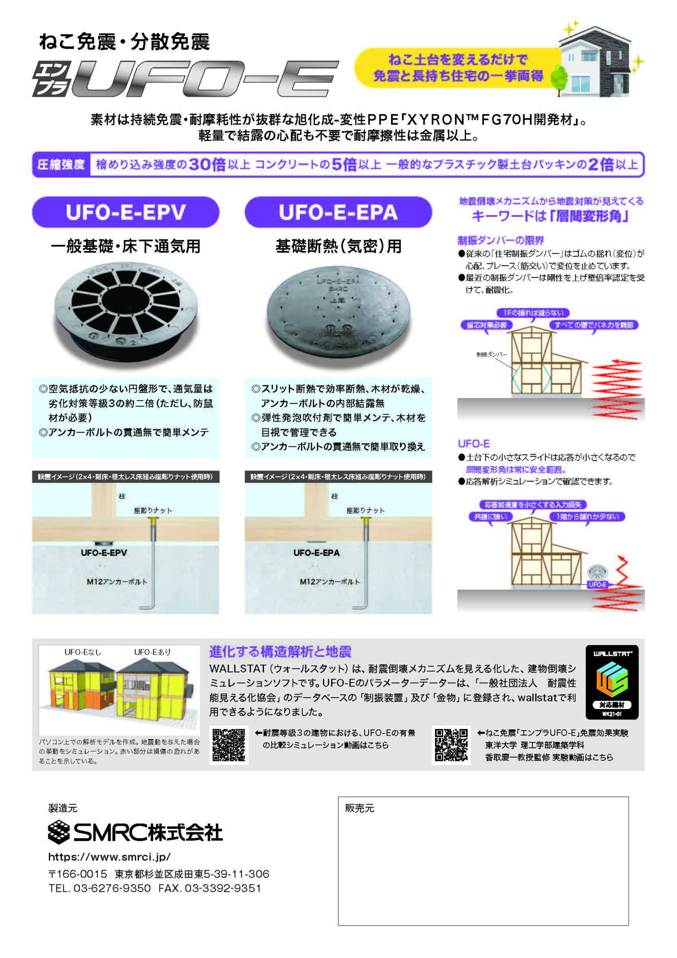 SMRC社開発の旭化成製のエンプラUFO-E・ねこ免震パッキンは免震機能を付加した特許製品。